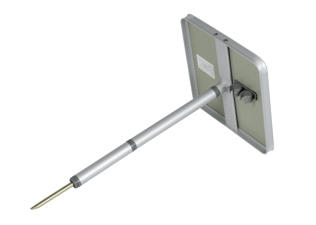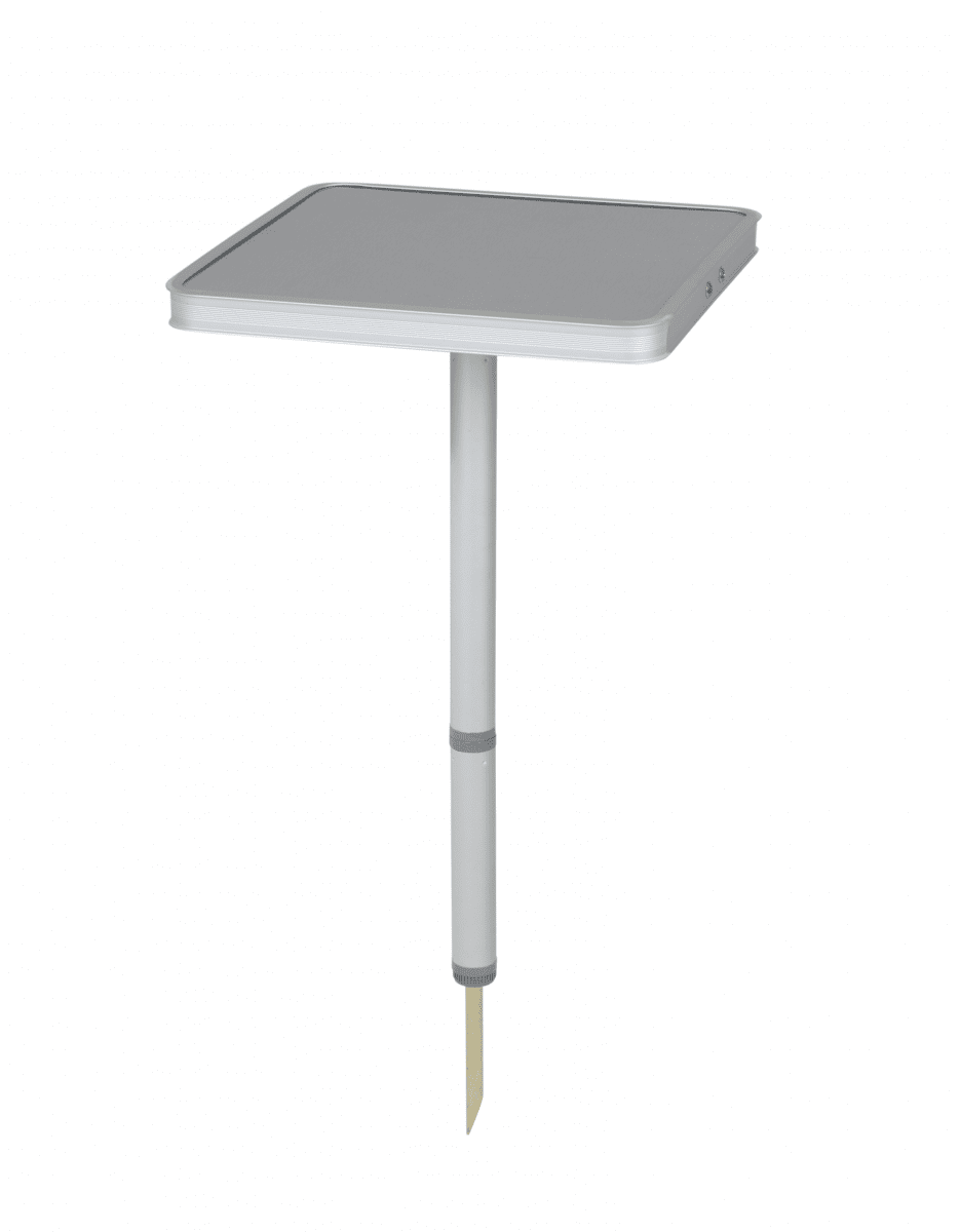 Bo-camp bord med markspjut av aluminium för fastsättning i marken. Kompakt förvaring där foten kan demonteras och förvaras i bordsskivan. Idealisk för ojämna ytor. Snabb och smidig att montera.