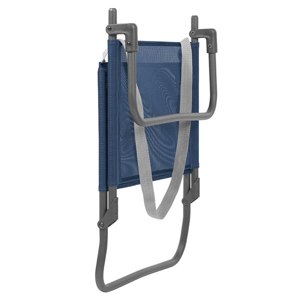 Lafuma strandstol i 16 mm stålram och Batyline-väv (100% nylon). UV-beständig och hoppfällbar och bl.a. utrustad med klämfingerskydd och transportbälte.