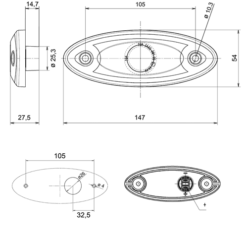 Sidomarkeringslykta Hella OneLED 12V. 6,3 mm kontakt.
