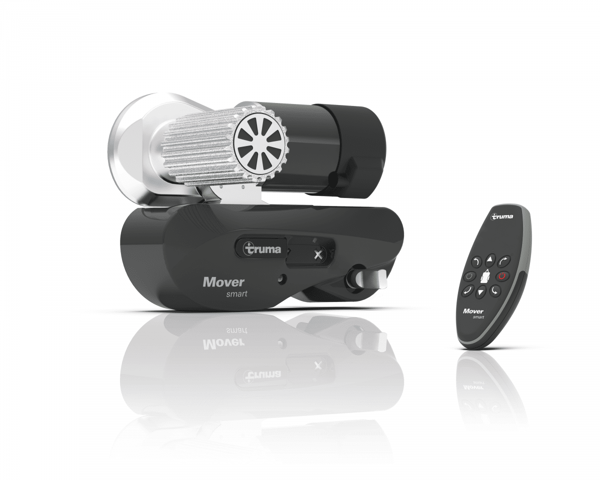 Truma Mover Smart M är en halvautomatisk manövreringshjälp. Genom att dra i en spak en gång svängs drivhjulen fram mot däcken och sedan är det bara att köra. Resten sköts via fjärrkontrollen som smidigt manövrerar husvagnen med känsla och precision. Mjukstartsfunktion gör att husvagnen börjar rulla utan något ryck och att den stannar på millimetern. Så snart man släpper manöverknapparna bromsas husvagnen. Drivhjulens yta har ett grepp som ger bra fäste mot däcken så att kraftöverföringen blir optimal. Drivhjulen är extra slitstarka och dessutom lätta – tack vare att de är gjutna av aluminium.