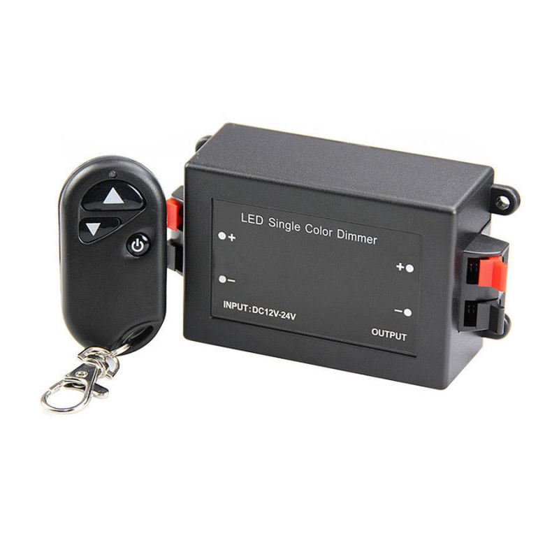 LED dimmer med 2st fjärrkontroller, 12-24VDC, där flera ljuskällor kan slås på/av och dimras samtidigt på distans.
