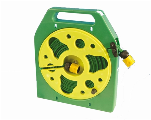 Slangvinda med snabbkoppling. Perfekt att använda vid påfyllning av vatten vid ställplatser / campingplatser m.m. Den ”platta” slangen töms på vatten när den vevas in i hållaren. Slanglängd 15 meter.