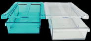 Set med 2 st kylskåpslådor i transparent plast. Hängs på kylskåpets hyllplan.
