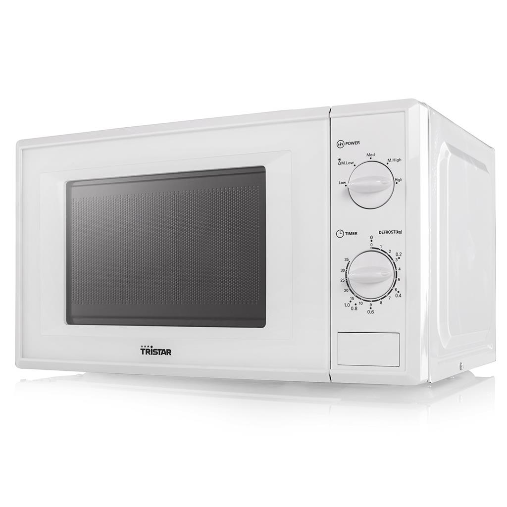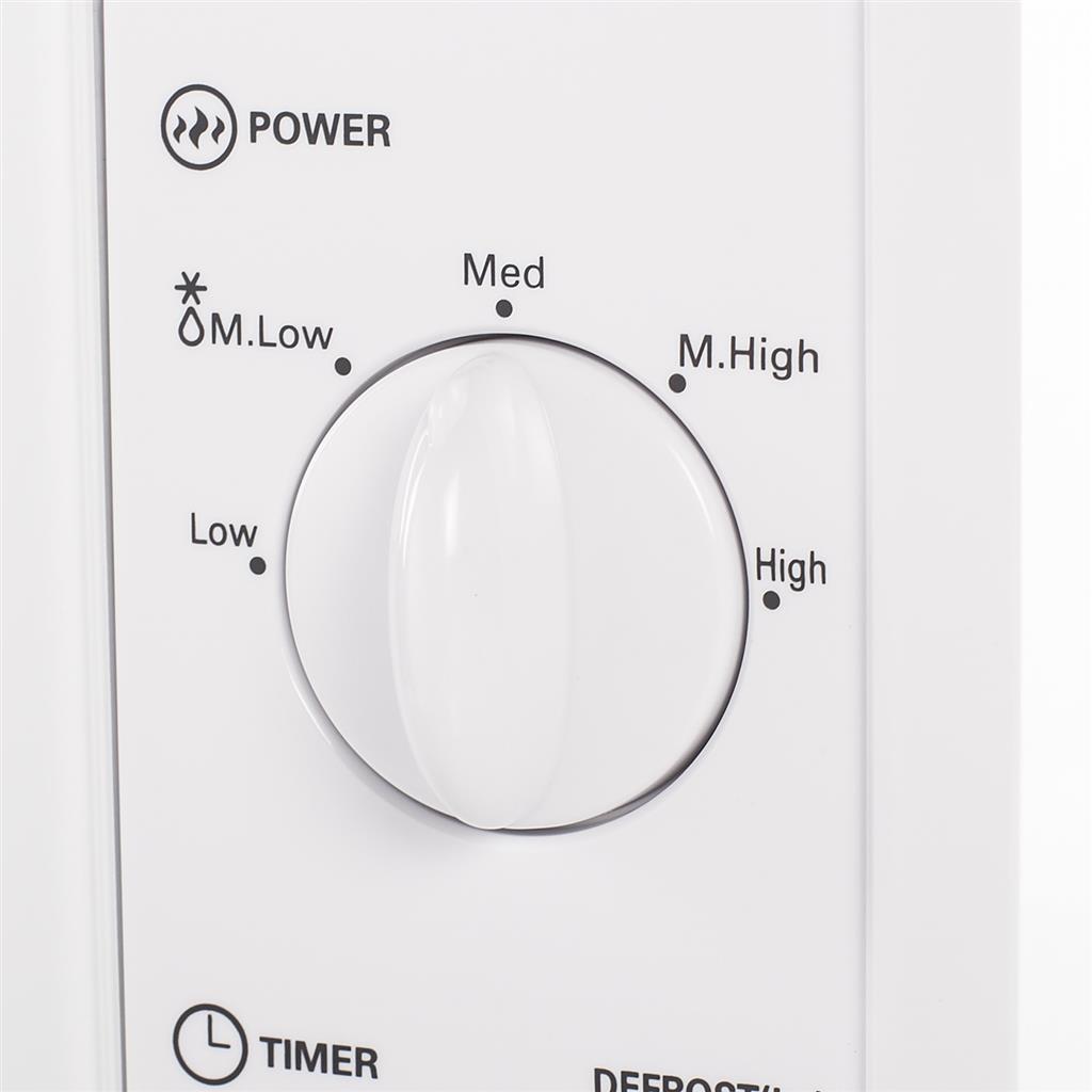 Smidig och lättanvänd mikrovågsugn med kapacitet på 20 liter. Fem olika inställningarna gör det enkelt att värma eller tina kött, soppa eller någon annan måltid. Inbyggd timer gör att mikrovågsugnen stängs av direkt efter att den inställda tiden är klar.